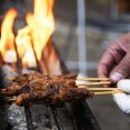 Sappige varkenssaté zo van de grill, natuurlijk met zelfgemaakte pindasaus